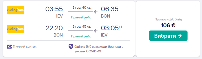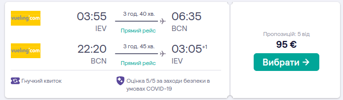 Київ – Барселона – Київ (08.08.2021 – 14.08.2021) – €106