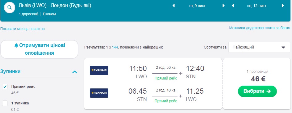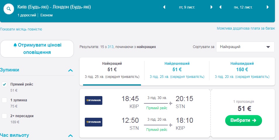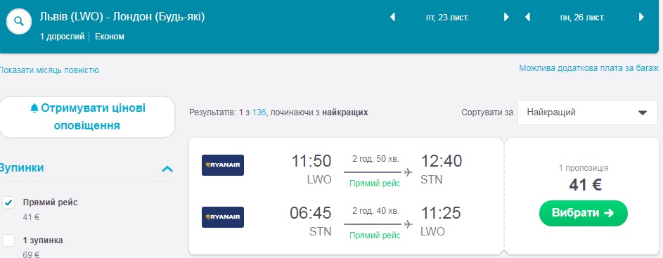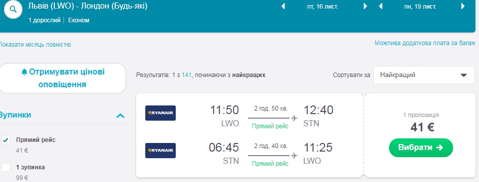 Якщо вам потрібно знайти дешеві квитки на інші дати, радимо скористатись сервісами Skyscanner.com або Kiwi.com .