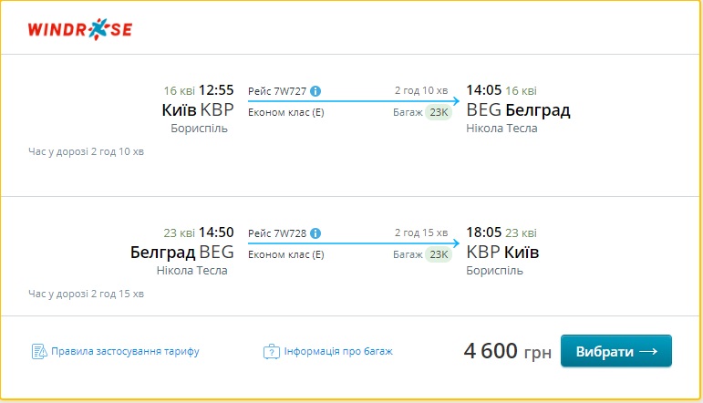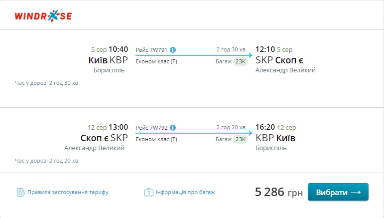 В ціні – зареєстрований багаж до 23 кг. Замовляти квитки потрібно на сайті Windrose.