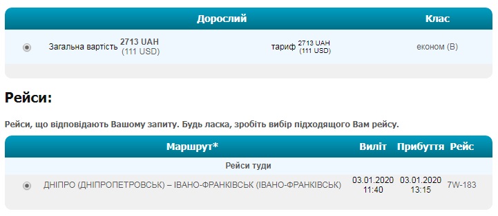 Дніпро – Івано-Франківськ (03.01.2020) – ₴2713