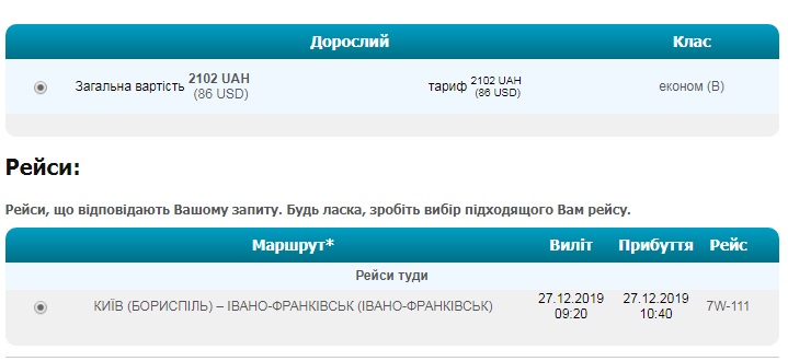 Київ – Івано-Франківськ (27.12.2019) – ₴2102