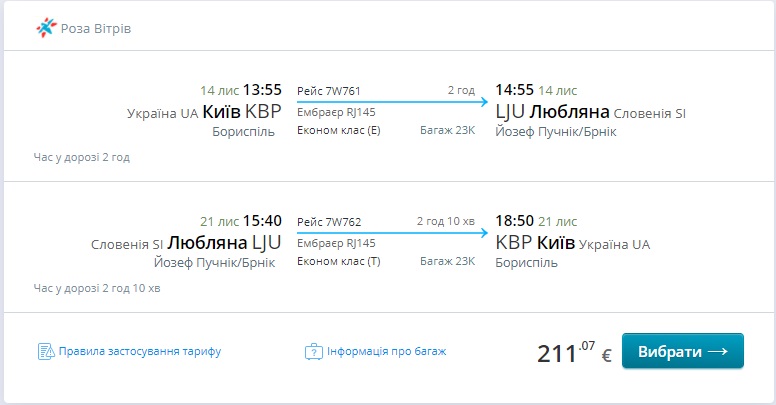 Київ-Любляна-Київ (14.11.2020 – 21.11.2020) – €211