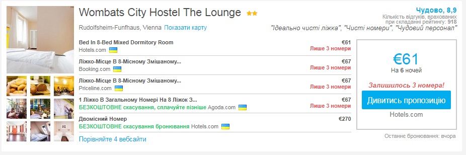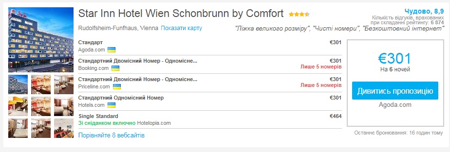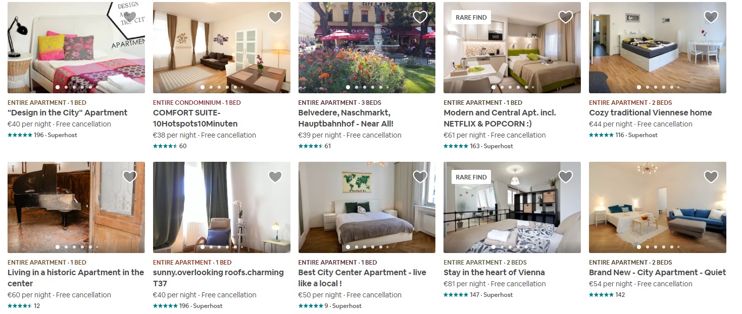Приклади бронювання житла у Відні на період 17.01.2019 — 23.01.2019 , 6 ночей :