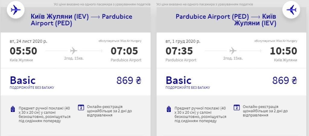 Київ-Пардубіце-Київ (24.11.2020 – 01.12.2020) – €58