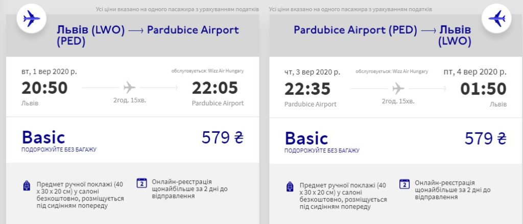 Вартість квитків з Києва та Львова у Пардубіце – від €19 в одну сторону або €38 туди-назад.