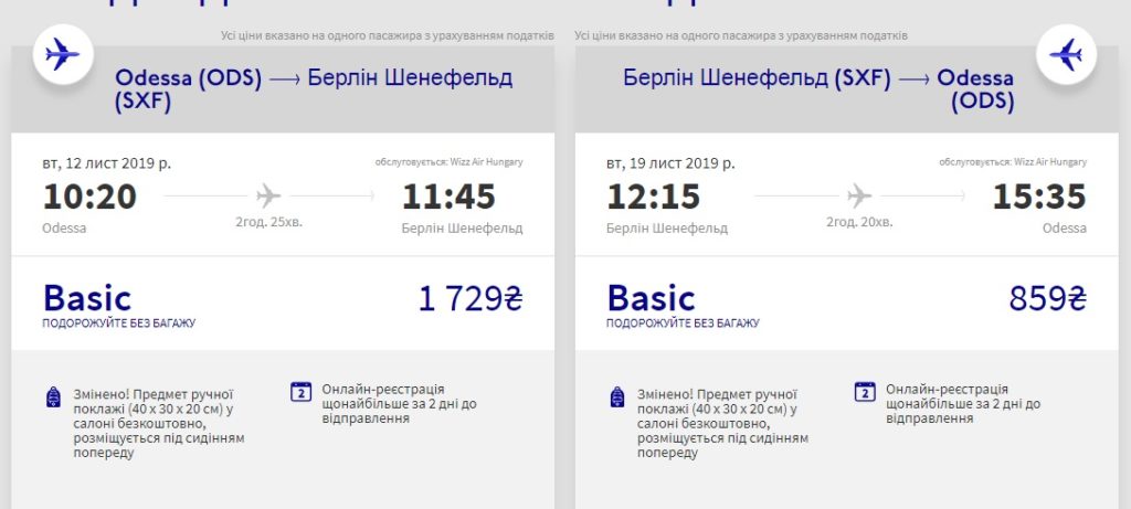 Одеса-Берлін-Одеса (12.11.2019 – 19.11.2019) – €90