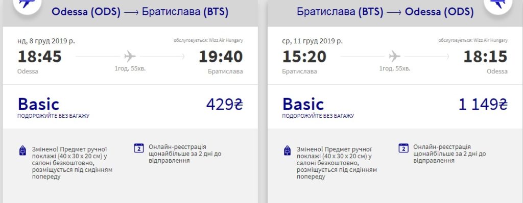 Одеса-Братислава-Одеса (06.12.2019 – 11.12.2019) – €55