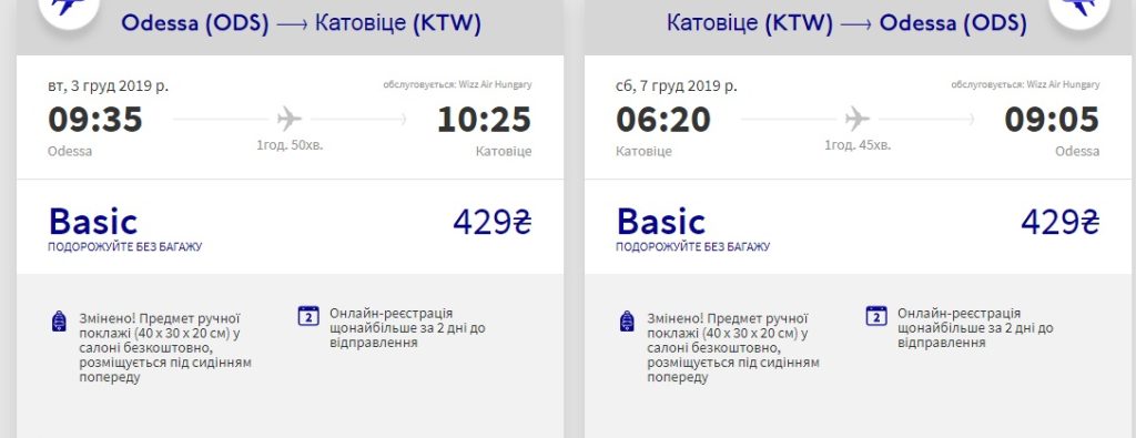 Одеса-Катовіце-Одеса (03.12.2019 – 07.12.2019) – €30