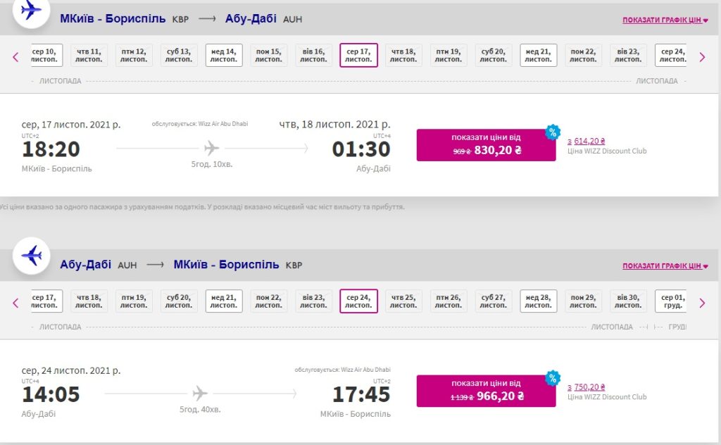 Київ – Абу-Дабі – Київ (17.11.2021 – 24.11.2021) – €58