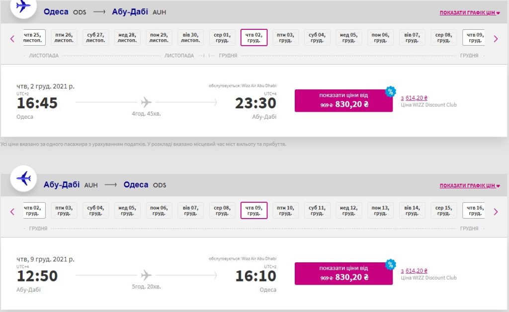 Одеса – Абу-Дабі – Одеса (02.12.2021 – 09.12.2021) – €54