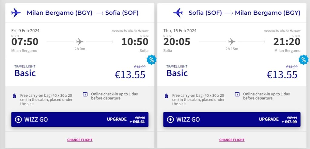 Мілан – Софія – Мілан (09.02.2024 – 15.02.2024) – €27