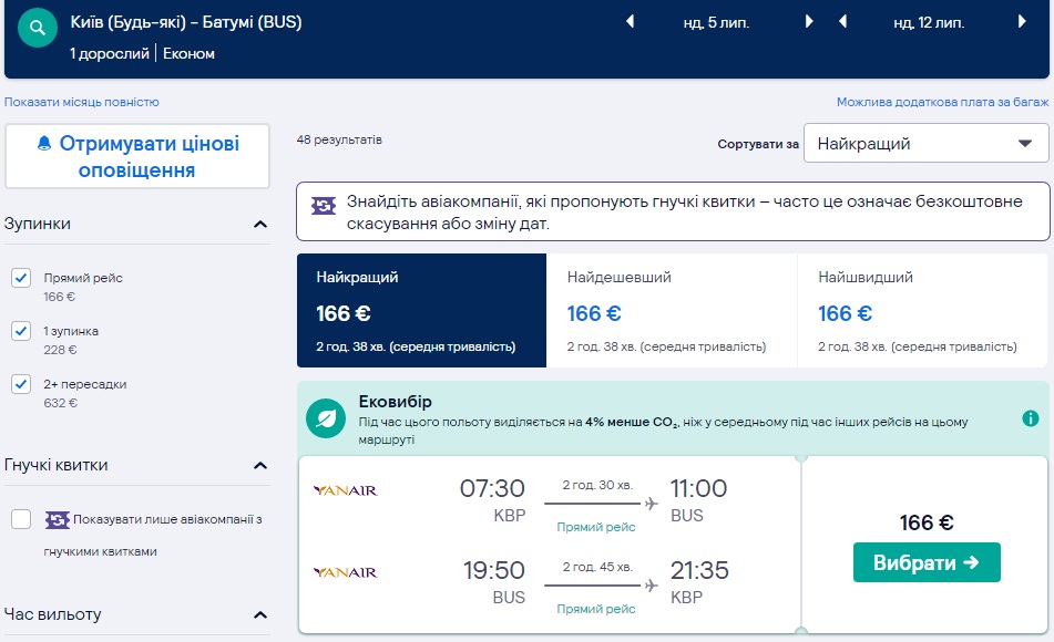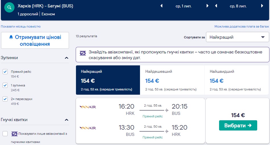Летіти прямими рейсами авіаперевізника можна з Києва, Одеси та Харкова у Батумі – від €151 туди-назад. В ціну включено зареєстрований багаж до 23 кг та ручну поклажу до 7 кг.