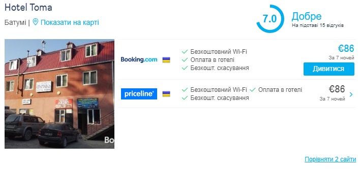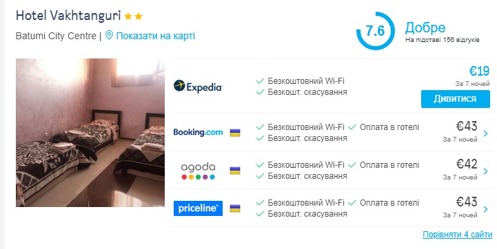 - Hotelscombined.сom — порівняння цін на готелі, знижки до 50%