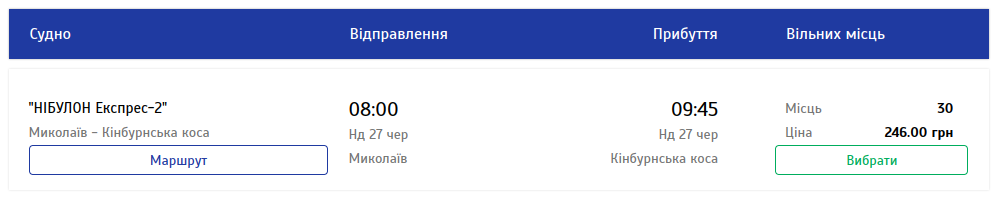 Бронювати місця можна на сайті компанії “Нібулон”.