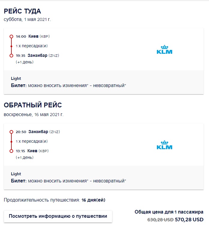 Київ – Занзібар – Київ (01.05.2021 – 16.05.2021) – $570